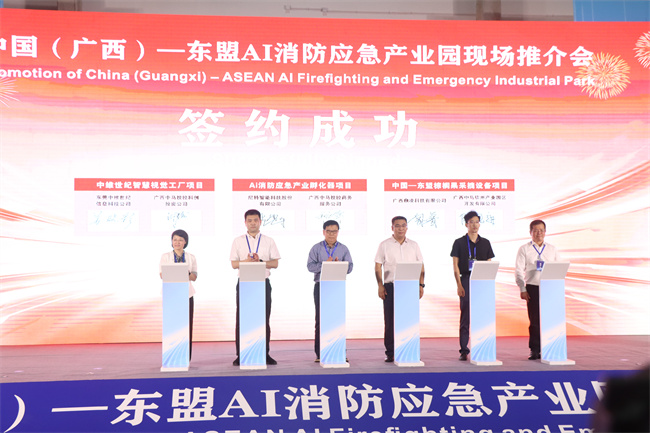13.2025年9月19日,公司总裁陈思进(右一)出席中国(广西)—东盟AI应急消防产业园项目推介会。
