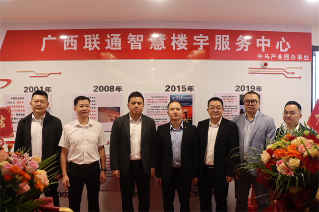 14.2025年11月18日,广西联通智慧楼宇服务中心入驻公司中马广场并举行揭牌仪式。公司副总裁程继武(右四)出席揭牌仪式。