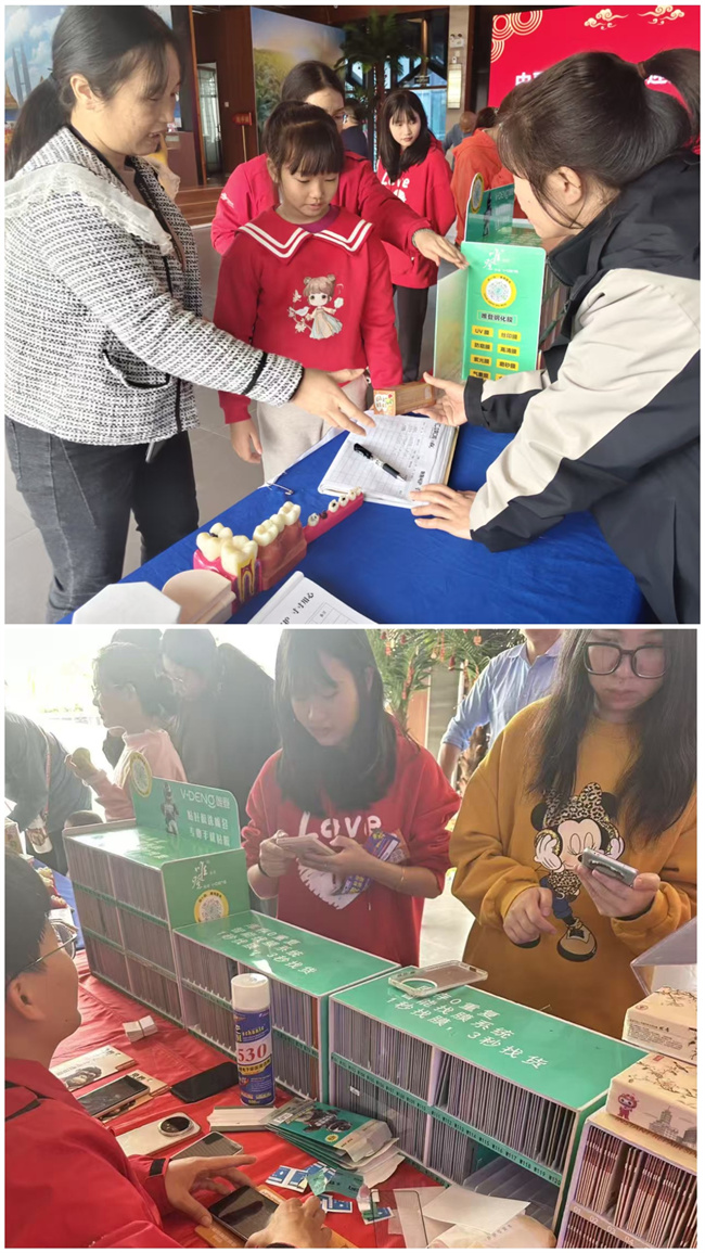 除了年味满满的体验类项目,活动还设置了实用便民福利区,聚焦业主日常需求,提供免费手机贴膜、口腔健康检查等贴心服务,让业主在感受新春氛围的同时,收获实实在在的便利。免费手机贴膜服务区内,专业工作人员细致操作、认真擦拭,细心为业主的手机贴上保护膜,让旧手机焕然一新;口腔检查区里,立笑口腔的医生耐心为每一位业主进行口腔检查,细致讲解口腔护理知识,针对不同年龄段业主的口腔问题给出专业建议,用专业服务守护业主口腔健康。