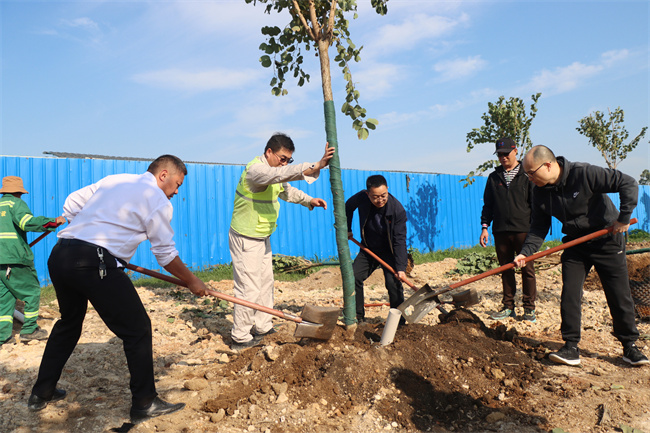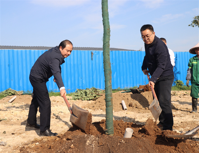 植树现场,大家严格遵循植树规范和专业技术要求,挥锹铲土、扶正树苗、培土压实,各个环节衔接有序、配合默契。经过一番忙碌,一株株宫粉紫荆树苗稳稳“扎根”绿控带,为园区绿色生态增添一抹清新盎然的绿意。